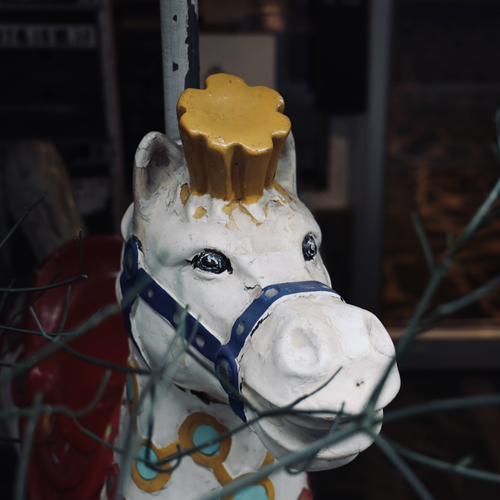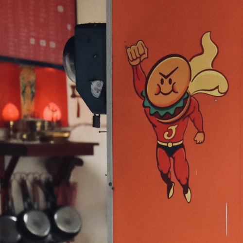 朝日に照らされた派手な色の看板もなぜか魅力的。